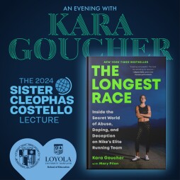 Loyola University Maryland welcomes Kara Goucher, New York Times bestselling author of The Longest Race: Inside the Secret World of Abuse, Doping, and Deception on Nike's Elite Running Team, an unvarnished and affecting memoir detailing a culture of corporate abuse and misogyny, for the 33rd Sister Cleophas Costello Lecture on Wednesday, Nov. 20, 2024.